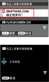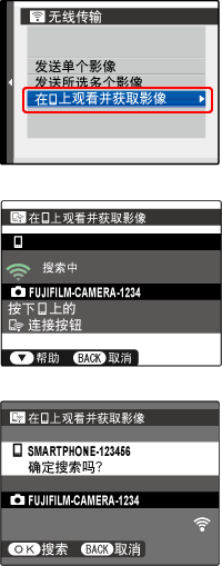 在回放菜单中选择 无线传输 > 上观看并获取影像