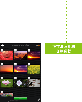 按照下列步骤从智能手机或平板设备访问照相机并浏览或下载照片。