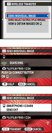 WIRELESS TRANSFER > SEND INDIVIDUAL IMAGE.