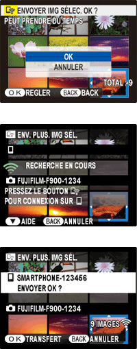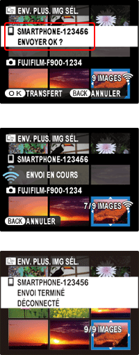 Après avoir vérifié le nom du périphérique auquel l'appareil photo est connecté, appuyez sur
