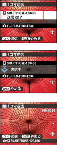 スマートフォン送信の1コマ送信を選びます。