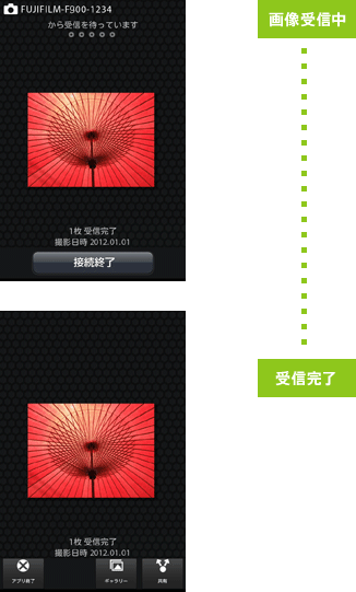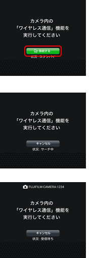 カメラとスマートフォンをなるべく近づけて、それぞれ同時に操作してください。