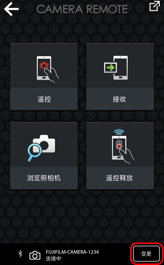 若要返回 FUJIFILM Camera Remote 应用程序,请轻触屏幕左上角的 Cam Remote。