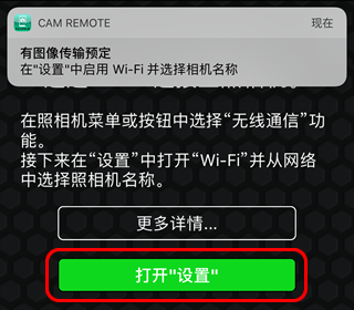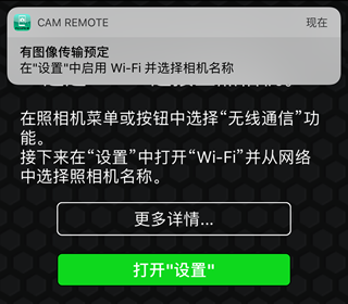 在相机上选择了照片进行上传时,智能手机或平板设备中将显示一条通知。