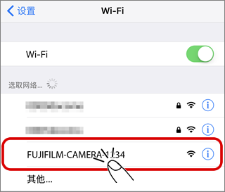 如下所述启用智能手机或平板设备上的 Wi-Fi 并连接至相机: