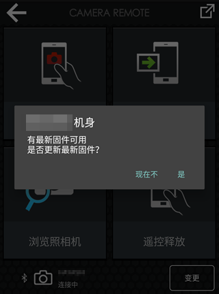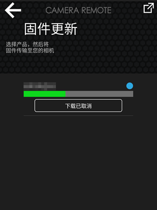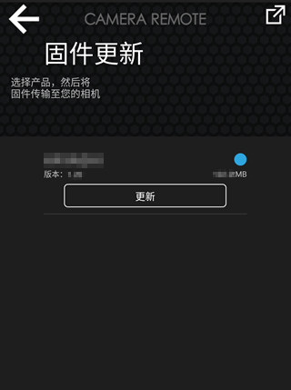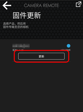 在智能手机上轻触 更新 开始将固件复制到相机。
