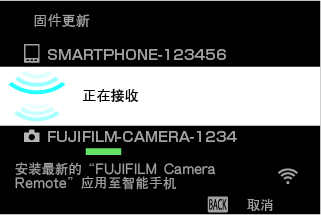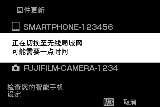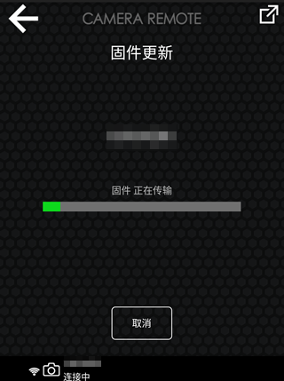 一旦智能手机完成将固件复制到相机的操作,相机将终止连接并 自动开始更新。