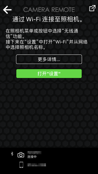 iOS 设备将显示一条信息要求连接至相机。轻触 打开“设置” 并选择目标相机。该步骤在 Android 设备上无需进行。