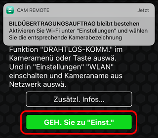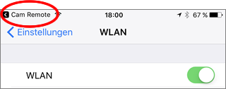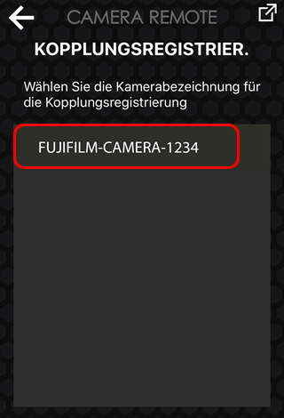 Um zur Kamerafernbedienungs-App von FUJIFILM zurückzukehren, tippen Sie auf Cam Remote links oben auf dem Display.