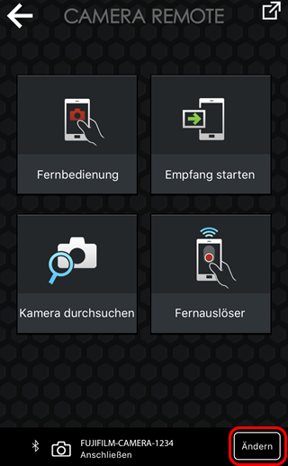 Um eine Verbindung zu einer anderen Kamera herzustellen, tippen Sie im Hauptmenü auf Ändern.
