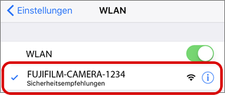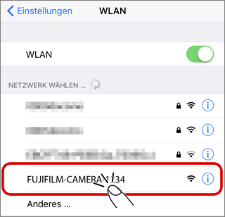 Aktivieren Sie Wi-Fi am Smartphone oder Tablet-PC und stellen Sie wie folgt eine Verbindung zur Kamera her:
