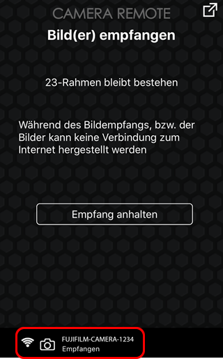 Die folgenden Schritte werden ausgeführt, während die FUJIFILM Camera Remote-App im Hintergrund läuft.