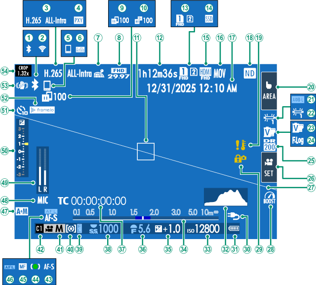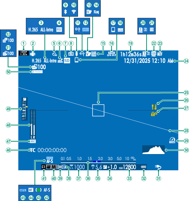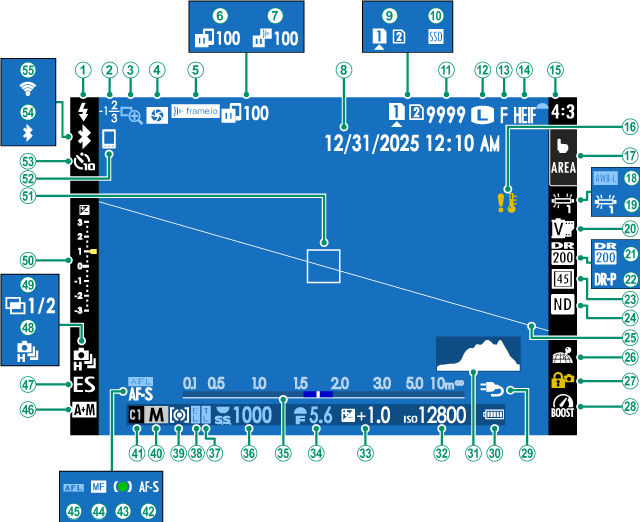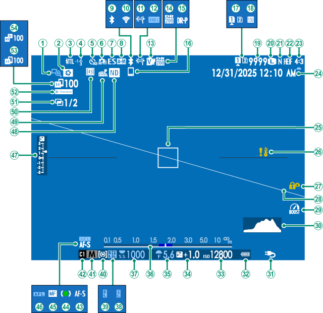 Not displayed when [ON] is selected for D[SCREEN SET-UP] > [LARGE INDICATORS MODE(EVF)].