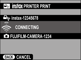 2. Select C[PLAY BACK MENU] > [instax PRINTER PRINT]. The camera will connect to the printer.