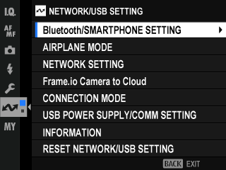 To access network/USB settings from the shooting or playback display, press [MENU/OK] and select the I (network/USB setting) tab.