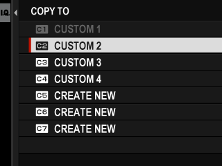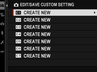 Highlight a destination bank for the new settings ([CREATE NEW] C1 through C7) and press [MENU/OK].
