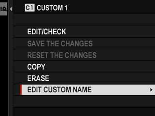 Highlight [EDIT CUSTOM NAME] and press [MENU/OK].