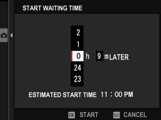 4. Use the focus stick to choose the starting time and then press [MENU/OK]. Shooting will start automatically.