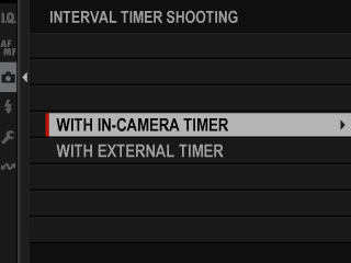 If you are using a remote release with its own timer, select [WITH EXTERNAL TIMER]. You will be returned to the shooting display, where you can start interval-timer photography using the remote release.