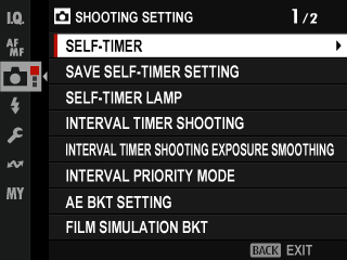 1. Highlight [INTERVAL TIMER SHOOTING] in the A ([SHOOTING SETTING]) tab and press [MENU/OK].