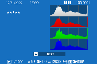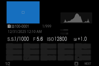 The photo information display changes each time the focus stick (focus lever) is pressed up.