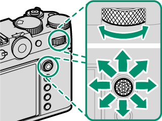 Use D[BUTTON/DIAL SETTING] > [FUNCTION (Fn) SETTING] to change the function performed by the center of the rear command dial. You can also assign its default function to other controls (aFunction Controls).