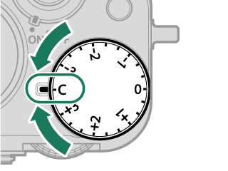 When the exposure compensation dial is rotated to [C], exposure compensation can be adjusted by rotating the front command dial.
