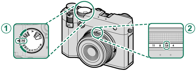 If the subject is outside the metering range of the camera, the aperture display will show “–––”.