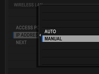 Select [IP ADDRESS SETTING] to choose the IP address manually as described in “Connecting Using an IP Address”.