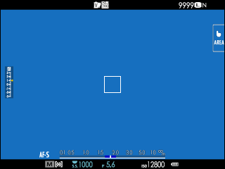 Select [ON] to display large indicators in the electronic viewfinder. The indicators displayed can be selected using D[SCREEN SET-UP] > [LARGE INDICATORS DISP. SETTING].