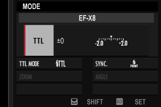 The following settings are available when an optional EF-X8 shoe-mounted flash unit is attached.
