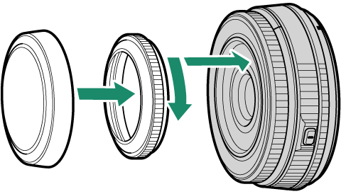 If you attach the hood too tightly after attaching a filter to the lens, the filter may remain stuck to the hood when the hood is removed. Do not attempt to forcibly separate the hood and filter, as the filter threads could injure your hands. Cover both the hood and filter with silicone jar openers or the like and unscrew them using the palms of your hands.