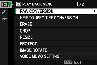 2. Highlight [RAW CONVERSION] in the playback menu.