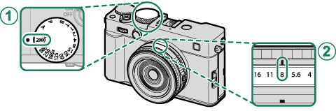 If the subject is outside the metering range of the camera, the aperture display will show “–––”.