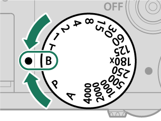 Choose a shutter speed of [B] (bulb) for long time-exposures in which you open and close the shutter manually. Use of a tripod is recommended to prevent the camera moving during the exposure.