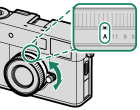 In mode [A] or [M], rotate the aperture ring to adjust aperture (aChoosing a Shooting Mode). Rotate the aperture ring to [A] to let the camera automatically adjust aperture.