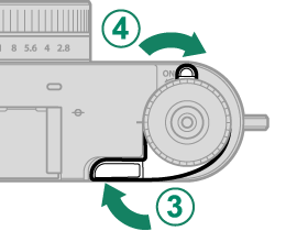 To turn the camera off, turn the [ON/OFF] switch to [OFF] (D) while pushing in the frame advance lever (C).