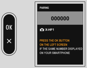 Launch the app on the smartphone and start paring with the camera to display a number on the smartphone and the camera. Confirm that both numbers match, tap t on the camera, and allow pairing on the smartphone.