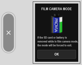 Double-tap the secondary LCD monitor during the film camera mode to exit the film camera mode. Once exited, shooting cannot be resumed with the previously used film roll.