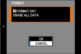 A confirmation dialog will be displayed. To format the memory card, highlight [OK] and press [MENU/OK].