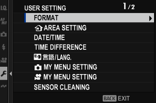 Select D[USER SETTING] > [FORMAT] in the D([SET UP]) tab.