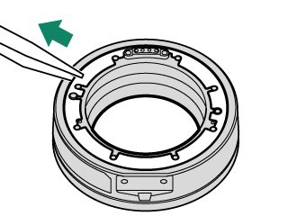 Select the shim appropriate for the lens you are using and attach it with tweezers.