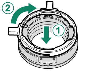 Attach the bayonet ring to the PL-mount adapter (A) and rotate it clockwise until it stops (B).