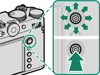 To choose the role played by the focus stick, press and hold the center of the stick or use DBUTTON/DIAL SETTING > FOCUS LEVER SETTING.