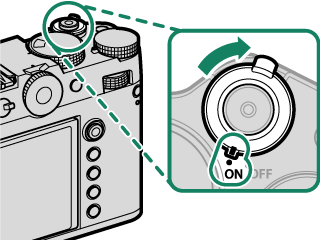 The camera will turn off automatically if no operations are performed for the length of time selected for DPOWER MANAGEMENT > AUTO POWER OFF. To reactivate the camera after it has turned off automatically, press the shutter button halfway or turn the ON/OFF switch to OFF and then back to ON.