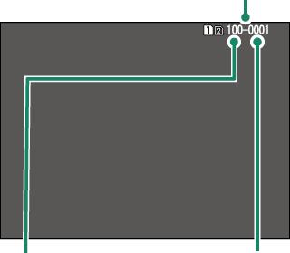 New pictures are stored in image files named using a four-digit file number assigned by adding one to the last file number used. The file number is displayed during playback as shown. FRAME NO. controls whether file numbering is reset to 0001 when a new memory card is inserted or the current memory card is formatted.