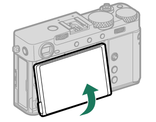 The LCD monitor can be tilted for easier viewing, but be careful not to touch the wires or trap fingers or other objects behind the monitor. Touching the wires could cause camera malfunction.