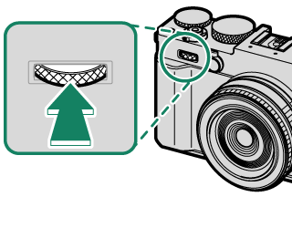 Pull and hold the control lever as shown to enable or disable FS RECIPE. Enable FS RECIPE to take pictures with individually registered image quality settings when the film simulation dial is rotated to FS1, FS2, or FS3.