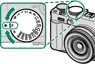 2. Rotate the shutter-speed dial to P and confirm that the camera displays shooting information for program AE.