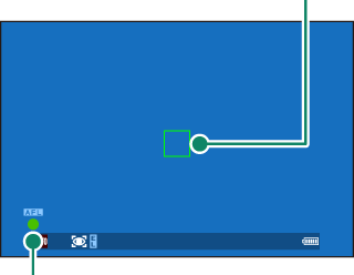 • If the camera is able to focus, the focus frame and focus indicator will glow green.